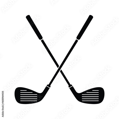 golf, club, sport, equipment, crossed, icon, symbol, silhouette, black, and, white, game, activity, leisure, recreation, athletic, swing, driver, iron, putter, golfing, sporting, good, vector, illustration, simple, clean, design, isolated, background