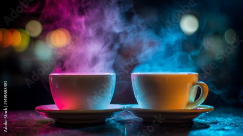 hot drink, cup, 2, hot, cafes, modern, beverage, drink, 2, cup, cappuccino, latte, espresso, photo, pair, caffeine, eatery, fashion, style, premium, bokeh, contrast, high, commercial, morning, breakfast, mug, mug, saucer, spoon, table, black, background, served, ready, closeup, closeup, closeup, view, appetising, epicure, steam, tea, aroma, smoke, warm