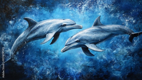 dolphin, dolphin, ocean, sea, water, blue, animal, animal, marin, mammal, mammal, underwater, wildlife, nature, wild, aquatic, fish, swimming, jump, jumping, leap, leaping, playful, friendly, happy, freedom, friendship, love, pair, couple, 2, group, pod, school, splash, spray, wave, wave, sky, horizon, background, painting, art, illustration, artwork, graphic, design