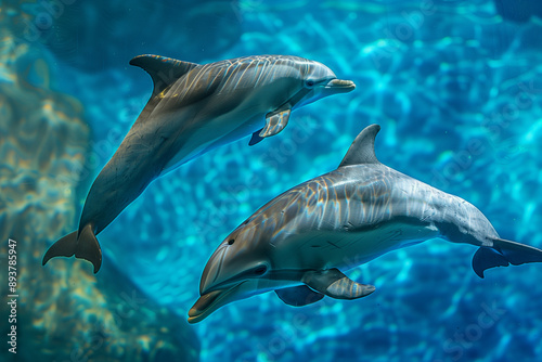 dolphin, ocean, water, marin, aquatic, swimming, underwater, blue, sea, nature, wildlife, mammal, pair, fin, tail, sunlight, ray, wave, clear, tropical, habitat, diving, environment, ecosystem, flipper, playful, serene, peaceful, animal, natural, adventure, exploration, closeup, portrait, motion, graceful, harmony, calmness, scenery, biodiversity, reef, species, movement, interaction, conservation