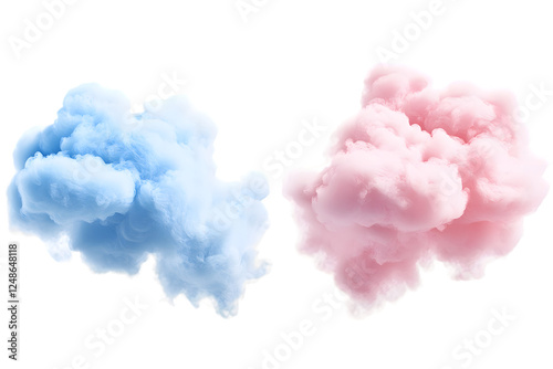 Two fluffy cotton candy clouds, one blue and one pink, showcasing a playful and whimsical atmosphere, PNG