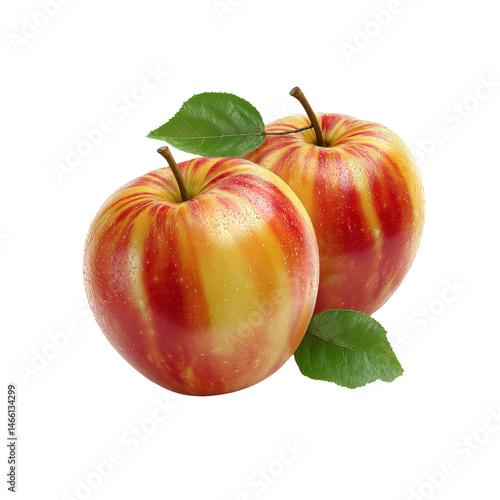 Two Fresh Red and Yellow Striped Apples with Green Leaves