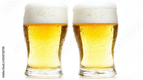 Two Glasses of Cold Golden Beer with Foamy Head and Bubbles Ready for a Toasting Celebration