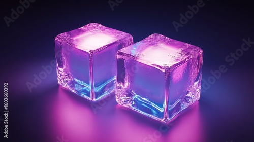 ice, cube, glowing, light, purple, pink, blue, illuminated, transparent, crystal, cold, refreshing, drink, summer, winter, glacé, cool, water, texture, abstract, shape, three-dimensional, render, graphic, design, art, photorealistic, modern, neon, lighting, effect, surface, detail, visual, composition, still, life, background, colours, illumination, bright, shiny, frost, glasses