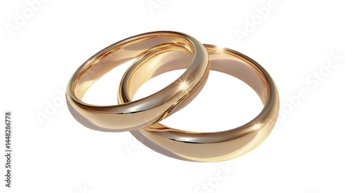 Two gold wedding rings intertwined symbolizing love and commitment,