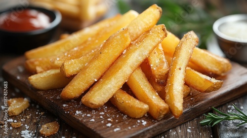 two golden crispy french fries isolated on transparent background