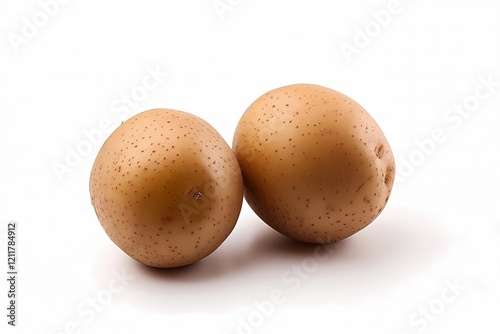 potato, potato, gold, brown, vegetable, tuber, food, ingredient, cooking, culinary, diet, healthy, nourishment, starch, carbohydrate, agriculture, farm, harvest, dirtied, plant, root, produce, closeup, isolated, white, background, texture, skin, round, oval, pair, duet, couple, 2, organic, natural, fresh, delicious, deliciously, earth, growth, botany, farming