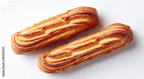 pastry, oblong, gold, brown, sugar, dusted, baked, sweet, delicious, food, treat, dessert, breakfast, snack, long, crispy, flaky, yeast, cotton balls, pastry, cream, dough, artisan, fresh, baked goods, food photography, topview, isolated, white background, closeup, bakery, golden brown, light, sugary, texture, buttery