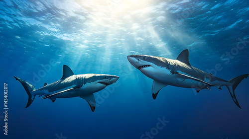 shark, underwater, ocean, marin, wildlife, predator, animal, swimming, nature, dangerous, white, blue, water, fish, big, powerful, hunting, oceanic, sea, sunlight, ray, illumination, fauna, great, shark, 2