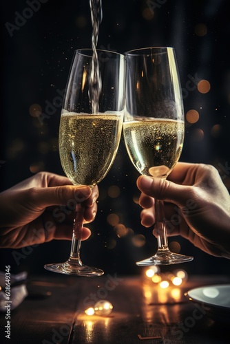 wine, glasses, alcohol, drink, red, eatery, table, celebration, champaign, hand, dinner, goggles, wine glass, toast, couple, party, woman, beverage, bar, fireplace, drinking, people, bottle, romantic, christmas