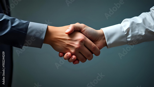 Two hands shake in a blank background. Ai generated