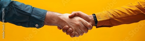 handshake, hand, shaking hands, agreements, deal, contract, partnership, business, success, collaboration, teamwork, trust, friendship, connection, oneness, togetherness, support, help, yellow, background, studio, isolated, closeup, macro, detail, man, man, arm, wrist, finger, thumb, palm, skin, texture, male, person, people, 2, pair, couple, human, anatomy, body part, gesture, signs, symbol, image, photograph, photo