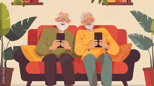 grandparent, old, couch, couple, phone, home, elderly, smartphone, happy, senior, man, woman, talking, virtual, people, wife, husband, sofa, age, cyberspace, modern, relax, mature, family, together, affection, love, illustration, vector, cartoon, marriage, enjoy, human relationships, retirement, call, contraption, smile, character, online, device, browsing, game, sitting, ai, grandfather, grandmother, retired