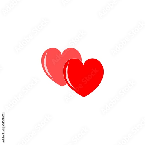 Two heart isolated. Red sign on white background. Romantic silhouette symbol linked, join, love, passion and wedding. Colorful mark of valentine day, card, etc. Design element. Vector illustration.