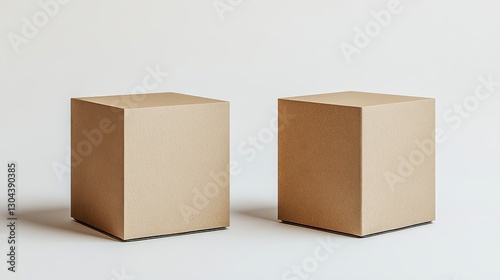 2, identical, brown, cardboard, box, contrasted, stark, white, create, clean, minimalist, composition, their, neutral, colours, palette, form, offer, opportunity, copy, or, design, be, integrated, image, drawing, viewer, eye, inviting, interaction