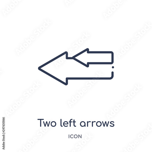 two left arrows icon from user interface outline collection. Thin line two left arrows icon isolated on white background.
