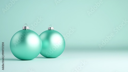 Two Mint Green Christmas Ornaments on Pale Aqua Background