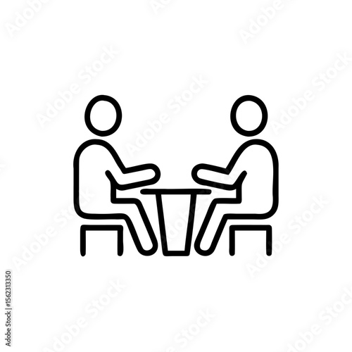 Two Outline Figures Sitting Across Table Simple Handdrawn Icon on meeting discussion