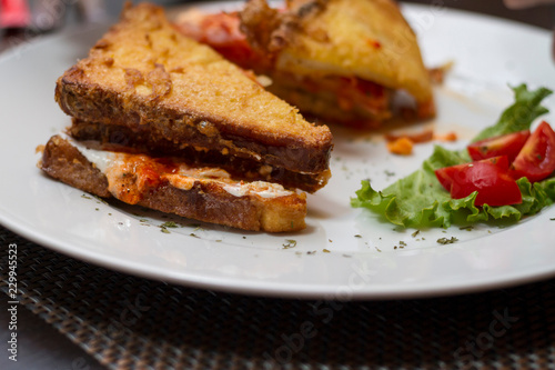 sandwich, sandwich, fried, egg, breakfast, food, eating, closeup, fork, plate, morning, cheese, ham, bread