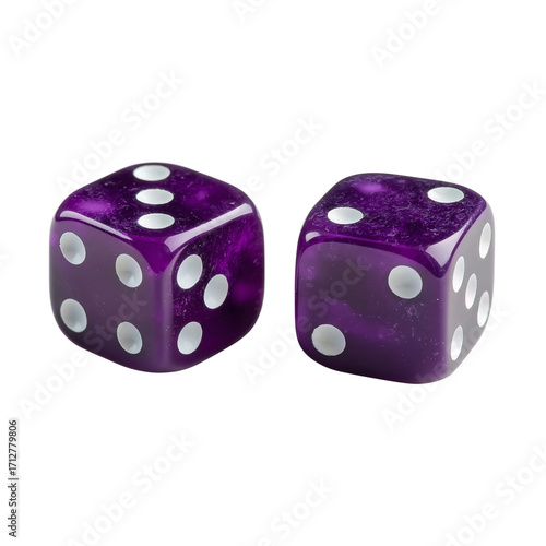 two purple dice, one with six dots and the other with seven dots, on a white background.