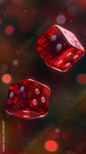 Two red dice floating in the air.