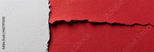 Two sheets of paper, one white, one red, torn apart