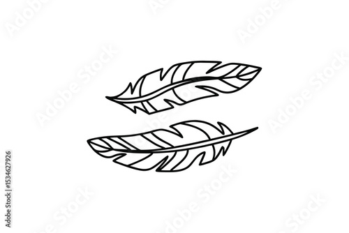 feather, feather, line art, outline, black-and-white, simple, minimalist, design element, graphic, illustration, vector, nature, bird, wing, tribal, pattern, decoration, art, isolated, white background, elegant, stylish, delicate, pair