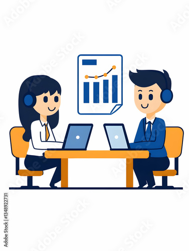 agent, team, teamwork, collaboration, support, client, service, help, desk, call, center, headset, earphones, laptop, computer, technology, datum, analysis, graph, chart, growth, progress, success, upward, trend, positive, business, office, men at work, employee, people, person, man, woman, professional, corporate, meeting, discussion, communication, connection, information, review, planning, strategy, solution, problem, solving, efficient, productivity