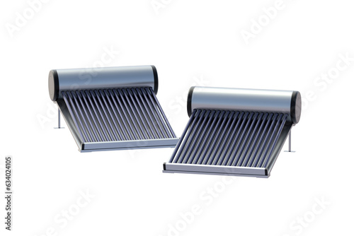 Two solar heaters isolated on white background. Modern ecological technology. 3d render