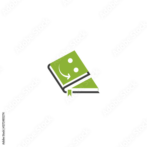 book, smiley face, arrow, logotype, icon, reading, learning, education, cognition, friendly, playful, simple, minimalist, green, light green, black, white, design, symbol, bookmark, tassel, layered, interactive, positive, connection, literature, happy, joy, vector, graphic, illustration, story, page, open book