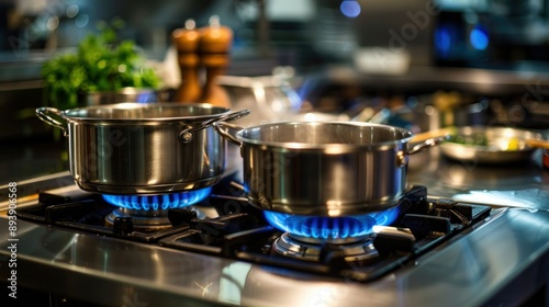 pot, burner, flames, gas, cooking, kitchen, stainless, steel, heat, food, water, simmer, boil, warm, hot, kitchen utensile, appliance, culinary, preparation, eatery, chef, dining, dinner, meal, receipe, cookery, ingredient, home, household, cookware, metal, surface, design, modern, clean, shiny, glossy, texture, light, shadow, background, blur, sharpened, still, life, composition