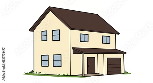 house, home, residential, building, architecture, duplex, beige, brown, roof, window, door, porch, garage, exterior, illustration, drawing, simple, design, modern, traditional, front view, housing, dwelling, home construction, construction
