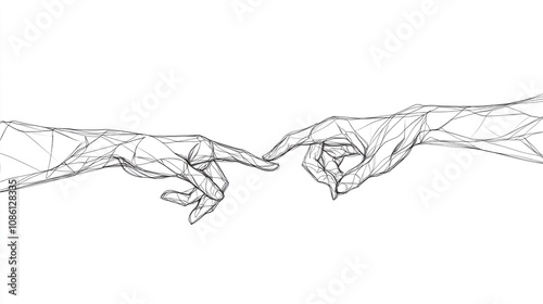 line art, hand, reaching, connection, geometric, minimalist, art, drawing, digital artwork, artwork, finger, touch, interaction, human relationships, graphic design, illustration, modern art, abstract art, simple, elegant, style, vignetting, line, design, aesthetic, symbolic, communication, oneness, creation