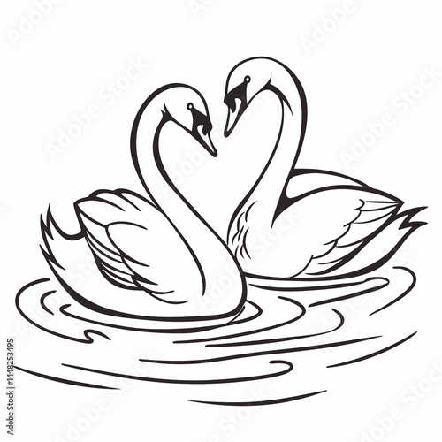 Two Swans Outline Drawing for Coloring Activities ,Easy and Fun