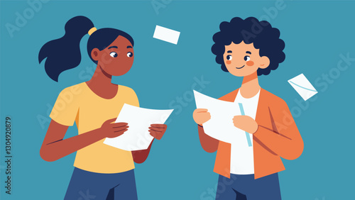Two teenagers from different backgrounds exchange letters finding common ground in their struggles and aspirations despite cultural differences.. Vector illustration