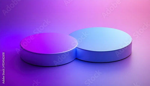dais, stage, display, platform, cylinder, round, circle, pedestal, racked, background, gradient, purple, pink, blue, light, colours, neon, vibrant, bright, shiny, glossy, smooth, modern, minimal, abstract, geometric, design, shape, texture, surface, presentation, product, empty, space, scene, studio, three-dimensional, render, illustration, graphic, element, object, art, image, photo