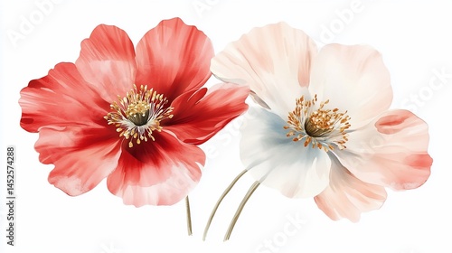 flower, poppy, red, white, pastel, delicate, illustration, art, design, botanical, blossom, flower petals, colours, nature, floral, beauty, high-coloured, elegant, style, painting, drawing, graphic, digital, smooth, texture, soft, light, pink, orange, gold, pattern, detail, close, up, artistic, romantic, image, rendering, creative, composition, poster