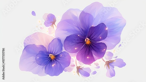 purple, pansy, flower, blossom, bloom, flower petals, delicate, white, background, soft, pastel, light, gentle, vibrant, floral, nature, beauty, spring, summer, garden, botanical, art, illustration, painting, digital, closeup, macro, high-coloured, airy, romantic, graceful, aethereal, dreamy, peaceful, serene