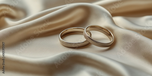 wedding band, wedding, ring, silk, white, gold, silver, elegant, simple, love, marriage, couple, celebration, romance, engagement, ceremony, bride, groom, jewellery, precious metal, platinum, tradition, symbol, forever, oneness, commitment, partnership, human relationships, luxurious, soft, fabric, texture, background, closeup, copy space, no people, indoor, day, horizontal, photo, image, gold, shiny, smooth, delicate, pure, innocent, hope, future