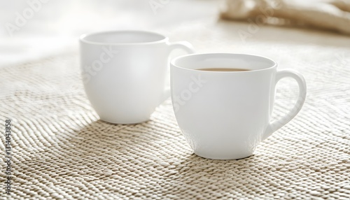 mug, hot drink, tea, beverage, drink, white, ceramic, porcelain, beige, mat, woven, texture, fabric, textile, surface, table, home, kitchen, comfort, warmth, cosy, morning, afternoon, relaxing, calm, quiet, peaceful, simple, minimalist, style, design, elegant, clean, fresh, bright, light, sunlit, smooth, rustic, natural, organic, contemporary, background, image, photo