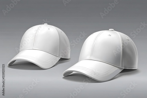 Two white hats are shown on a gray background, photo, image, design, mockup