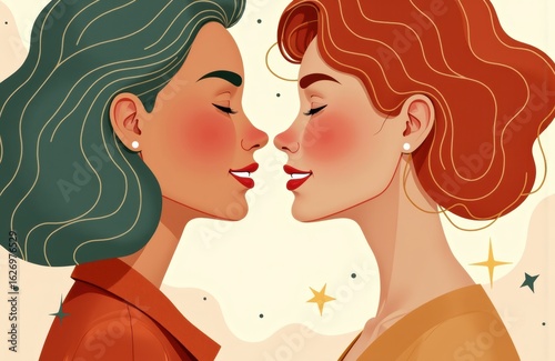 woman, female, portrait, illustration, diversity, friendship, love, connection, close, up, face, profile, gentle, smiling, warm, tone, modern, art, stylish, beauty, elegance, harmony, affection, tenderness, emotion, intimacy, artistic, digital, concept, symbol, emotional, representation, colourful, hair, expressive, face