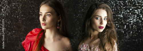 collage, 2, woman, couple, dress, red, girl, girlfriend, hair, brown, haired, calm, people, female, background, adult, young, beautiful, portrait, wall, image, face, closeup, elegance, attractive, studio, eye, cute, fashion, model, beauty, dark, casual attire, caucasian, sexy, human, indoor, shot, lady, brunette, staring, russian, straight, shadow, half face