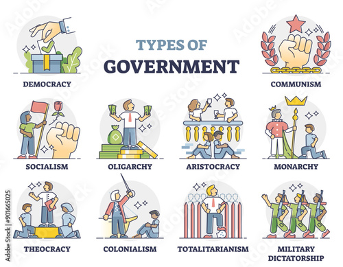 government, type, political, power, form, kind, democracy, aristocracy, monarchy, dictatorship, anarchy, military, constitution, ruler, community, election, party, president, commonwealth, concept, politician, freedom, independence, aristocratic, king, dictator, communist, emperor, citizen, representative, supreme, vote, outline, illustration, communism, socialism, theocracy, colonialism, collection, set, labeled, classification, various, list, strategy, country