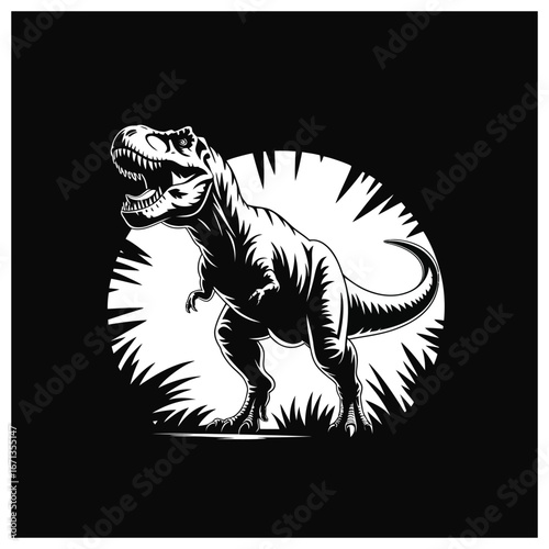 Tyrannosaurus Rex Silhouette Illustration Roaring in a Prehistoric Landscape Design