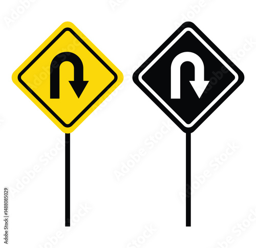 U turn arrow icon. U-Turn road sign. Arrow flat icon for u-turn or return. U Turn is allowed with caution. Vector illustrator.