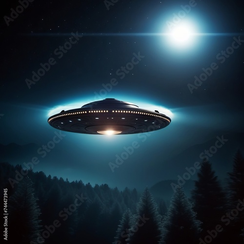UFO above the forest. 3D AI generative