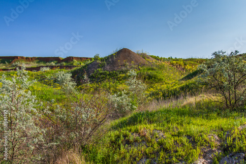 ukraine, acacia, cinder, grass, haze, olive, ravine, sky, steppe, tree