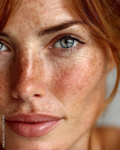 dermatology, stock, photo, portrait, closeup, woman, neutral, white, studio, background, professional, soft, lighting, skin, showing, visible, redness, skincare, skincare, acne, pimple, pigmentation, freckle, sunburn