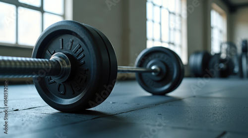 Unbranded Gym Barbell on a Textured Rubber Mat with Sunlit Window for Natural Ambience